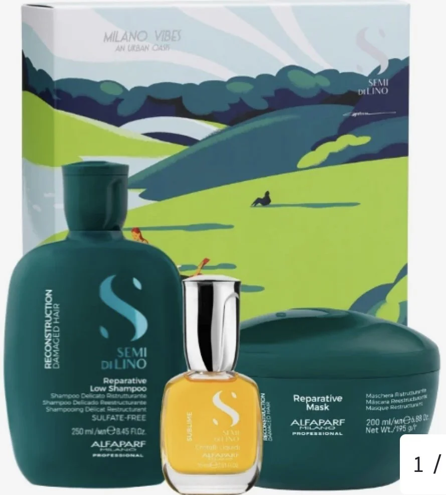 emi di Lino Reconstruction - Damaged hair. Reparative Low Shampoo gently cleanses hair, it promotes reconstruction of the fiber and restores strength and elasticity. Day after day, the hair gains structure. Vegan Formula. Semi di Lino Reconstruction - Damaged hair. Reparative Mask is an intensive conditioning treatment, it helps reconstruct the fiber deep down and gradually increases the hair’s resistance to breakage. Day after day, the hair gains strength and structure. Vegan Formula. Cristalli Liquidi is a serum that instantly protects and brightens the hair fiber. Hair rediscovers its extraordinary beauty. Conditioner detangles and gives extreme shine, for soft and light hair that maintains its beauty and vitality over time. Vegan Formula.